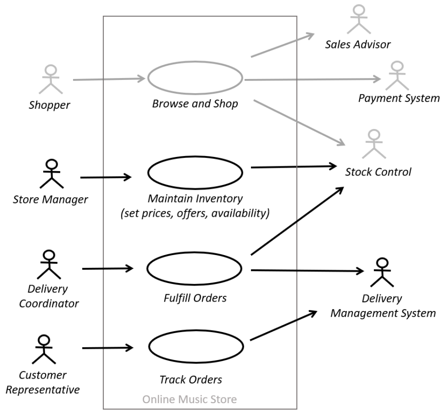 Чтобы понять суть того, что должна делать система, сосредоточьтесь на том, кто или что будет ее использовать, а затем посмотрите, что система должна делать для них, чтобы помочь им достичь своих целей.