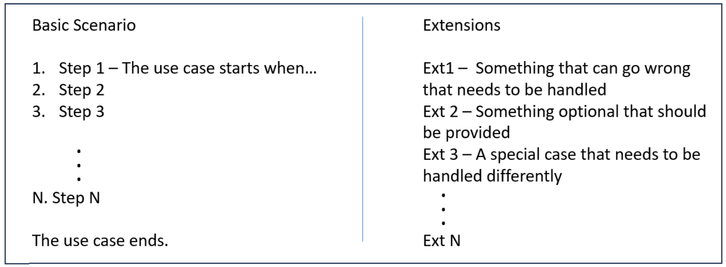 Расширение: Описание варианта или необязательного поведения как части повествования юзкейса. Также называется альтернативным потоком. Расширения определяются относительно базового сценария юзкейса и описывают полный путь юзкейса.