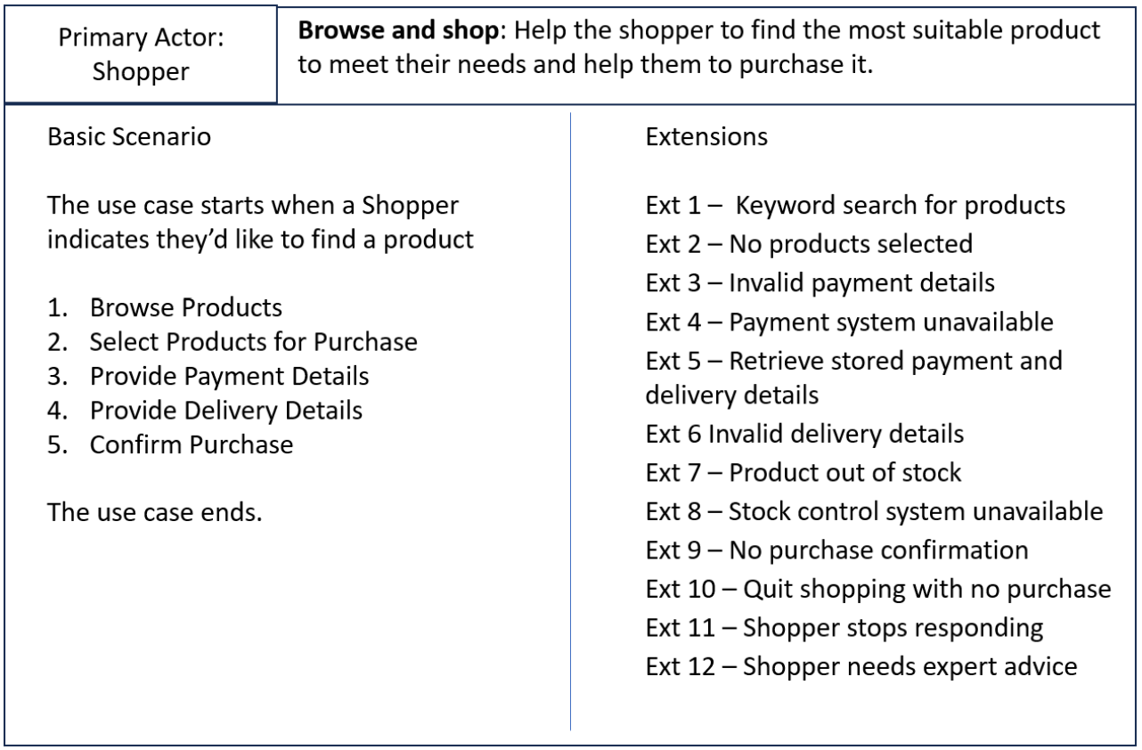 Юзкейсы проясняют, что система будет делать и, намеренно опуская, чего она делать не будет. Они обеспечивают эффективное предвидение, управление областью применения и инкрементную разработку систем любого типа и размера. Они использовались для управления разработкой программных систем с момента их первоначального представления Иваром Якобсоном на OOPSLA в 1987 году. За прошедшие годы они стали основой для многих различных методов и неотъемлемой частью Unified Modeling Language. Они используются во многих различных контекстах и средах, а также многими различными типами команд. Например, юзкейсы могут быть полезны как небольшим гибким командам разработчиков, создающим приложения, интенсивно работающие с пользователем, так и крупным проектам, создающим сложные системы взаимосвязанных систем, такие как корпоративные системы, линейки продуктов и системы в облаке.