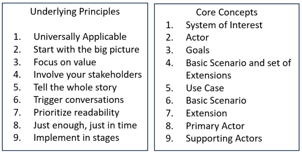 Чтобы исправить эту ситуацию, в 2024 году Ивар Якобсон и Алистер Кокберн опубликовали набор принципов и концепций, лежащих в основе всех успешных применений юзкейсов. Он получил название “Основа Use-Case”.