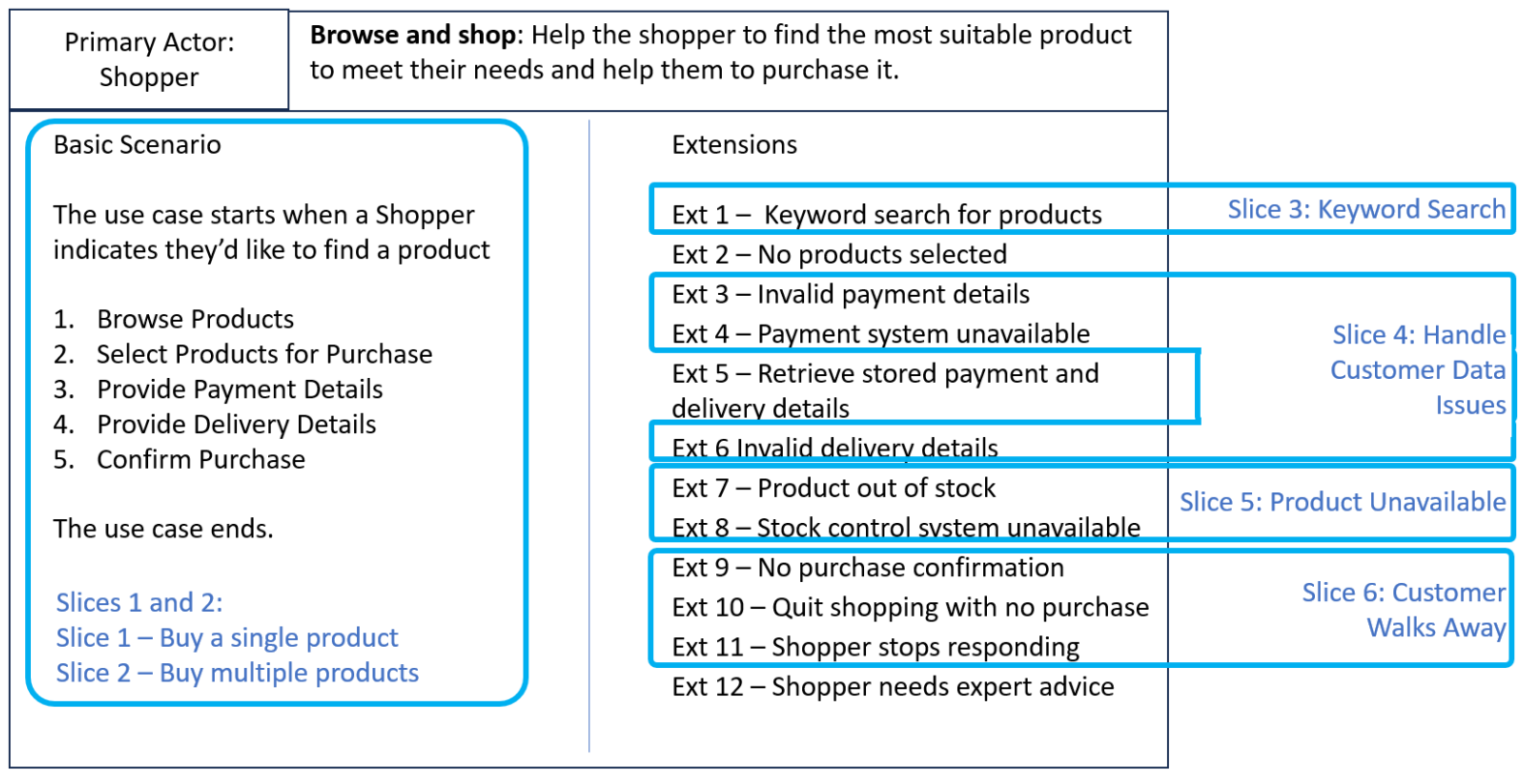 Этот уровень детализации подходит для тех юзкейсов, которые вы решите не реализовывать. Потребуется больше деталей, если юзкейс будет разбит на срезы для реализации.