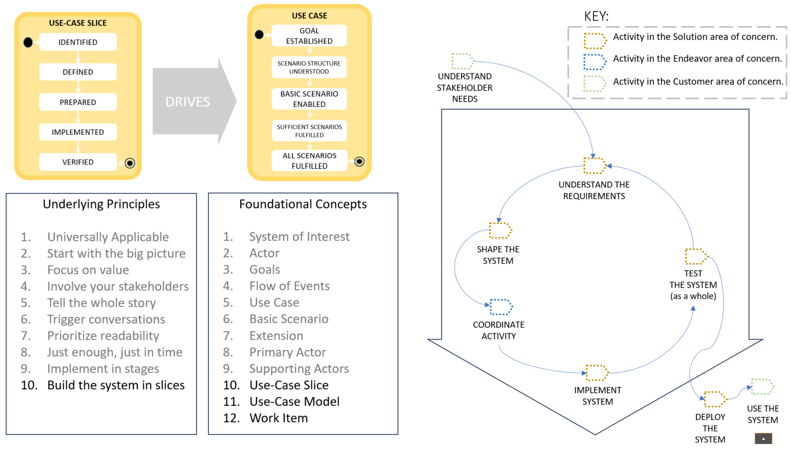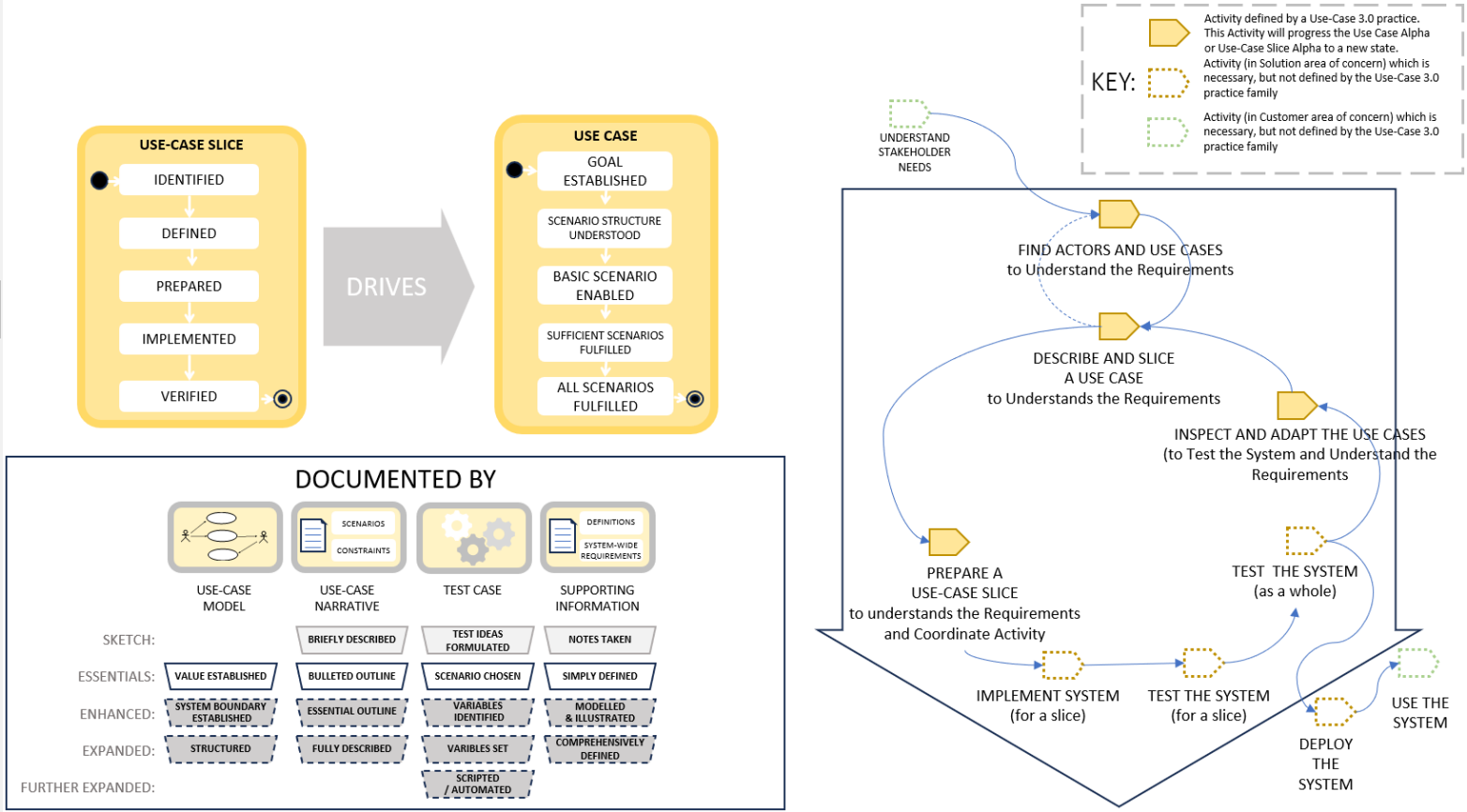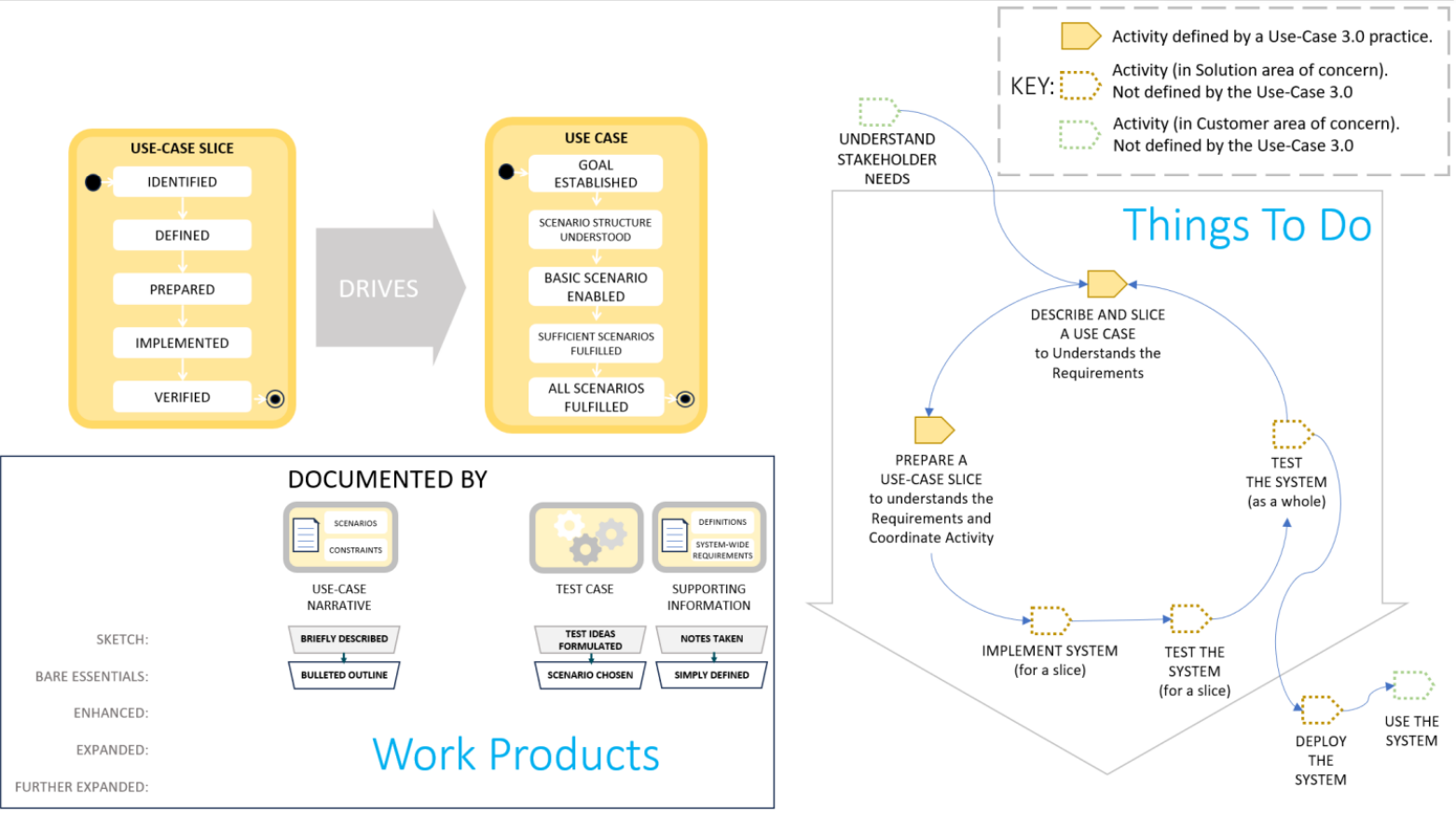 - Анатомия практик Use-Case 3.0 - описание ключевых концепций, действий, рабочих продуктов и правил, которые их связывают.