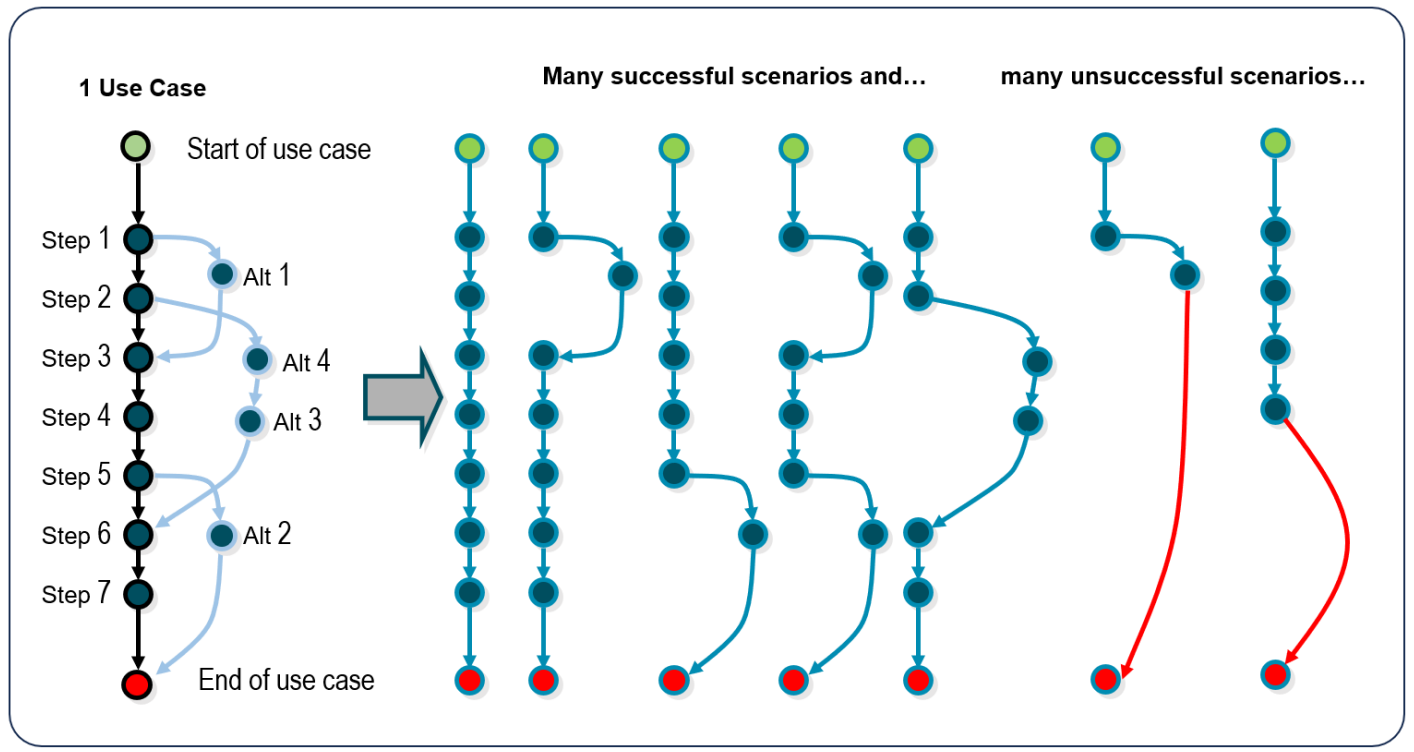 - Описывают последовательность действий, включая варианты, которые система и ее действующие лица могут выполнить для достижения цели.