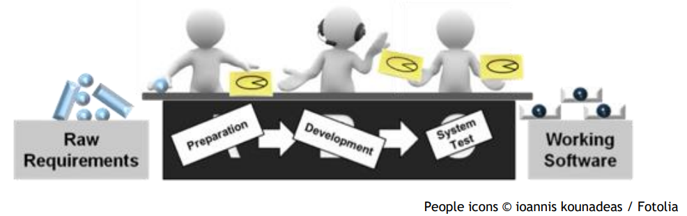 Команда: термин, используемый в этой электронной книге для обозначения группы людей, реализующих систему. Команда обычно включает людей, разрабатывающих систему, и людей, тестирующих систему. Команда также может включать представителя пользователя, который гарантирует, что работа, выполняемая командой, также ценна для заинтересованных сторон.