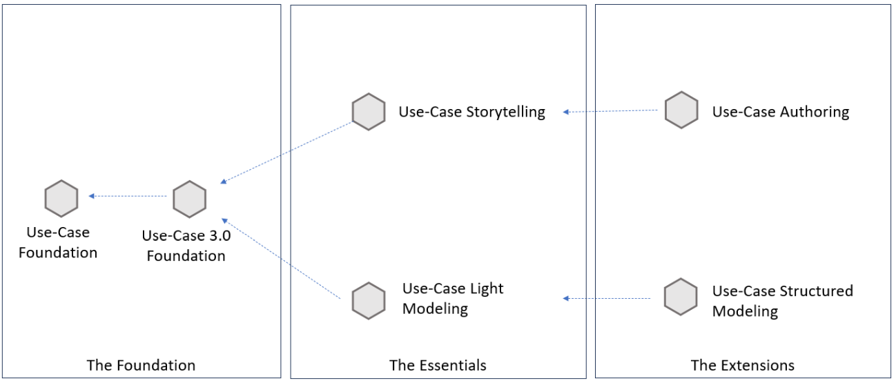Например, одна команда может захотеть описать юзкейсы как простое повествование, другая команда предпочитает описывать свои юзкейсы визуально, третья команда может захотеть иметь как повествование, так и визуализацию, четвертая команда может захотеть применить более глубокое авторство в сочетании с визуализацией и т. д. Чтобы обеспечить высокую гибкость для команд в выборе того, что им нужно, и избежать большого количества повторений, отдельные практики в Use-Case 3.0 являются многоразовыми строительными блоками, которые можно использовать при составлении конкретной практики команды.